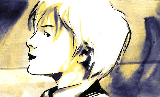 « 1984 » est un livre profondément noir et le dessin traduit cela magnifiquement. D’abord par l’utilisation des couleurs : de grandes masses noires plongent les personnages dans l’ombre et une dominance de gris permet de garder l’aspect austère du livre ; Coste ne se contente pourtant pas d’une palette de nuances de gris et travaille en quadrichromie. On notera cependant que dans la palette utilisée le vert n‘apparaît jamais : comme si ce symbole d’espoir, de renaissance et de vitalité n’avait pas sa place dans un univers miné. A la place, on trouve des couleurs primaires. Cela permet de bien différencier les séquences et les atmosphères : le bleu et le jaune quand le héros est en représentation au Ministère, le bordeaux quand il se trouve dans un espace intime (chez lui, dans la nature ou dans le quartier des prolétaires), un gris bleuté pour la prison et un jaune et rouge très vifs pour les apparitions de Big Brother ; ces couleurs primaires mettent aussi en relief la violence sourde par leur côté tranché.