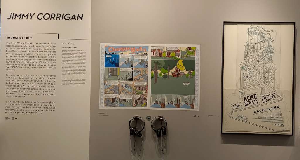 Cette année, au FIBD d’Angoulême, j’ai eu la chance de parcourir l’exposition consacrée à Chris Ware, lauréat du Grand prix 2021 avec Benoît Peeters et Julien June Misserey, les commissaires de l’expo.