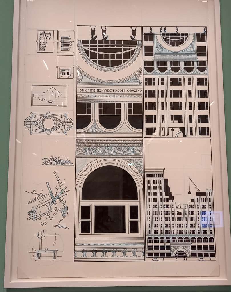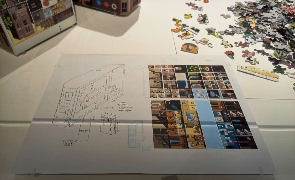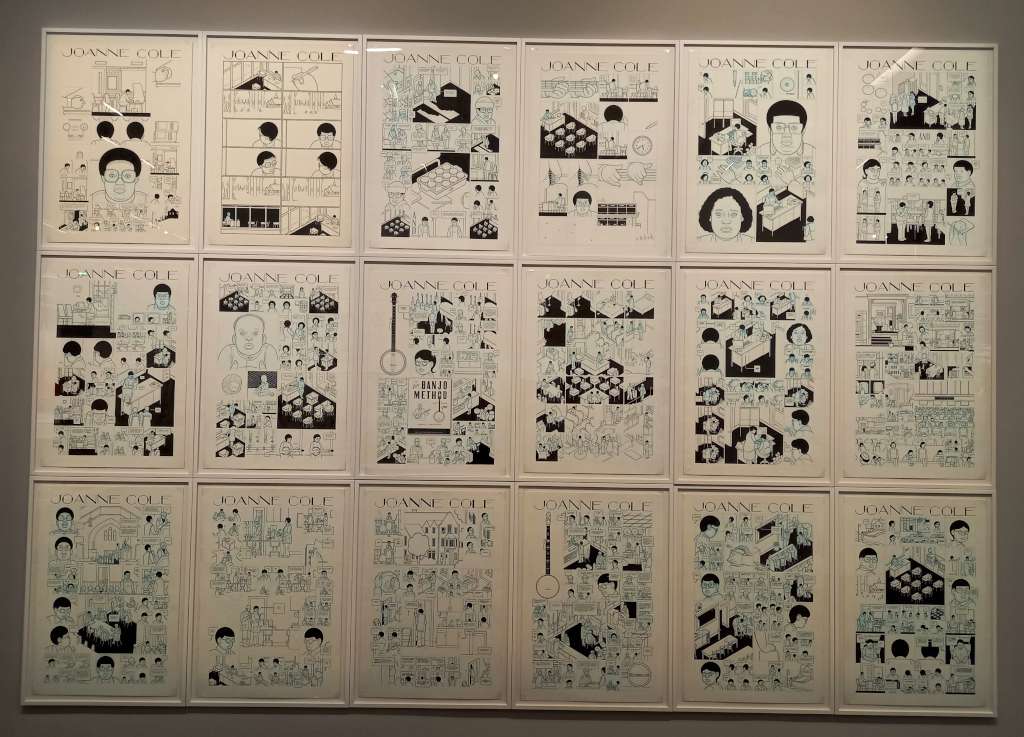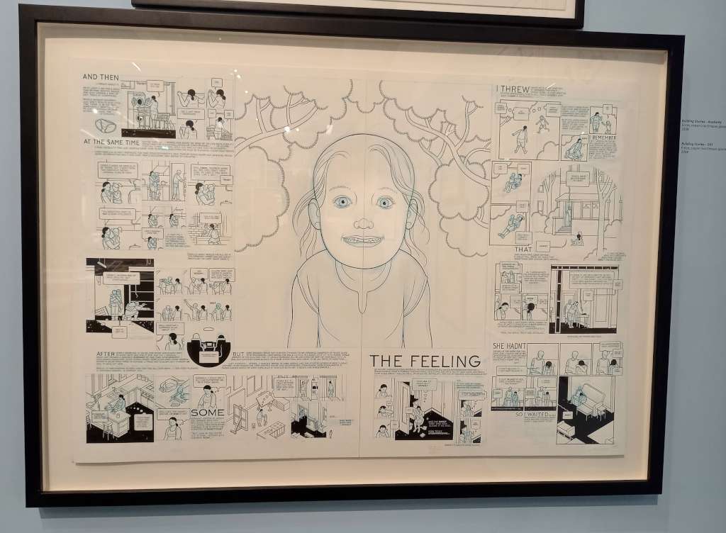 Par le biais de ses planches originales, croquis, carnets de notes, objets et maquettes réalisés par ses soins, l’univers de Chris Ware y est décliné tout au long d’un parcours chronologique :
