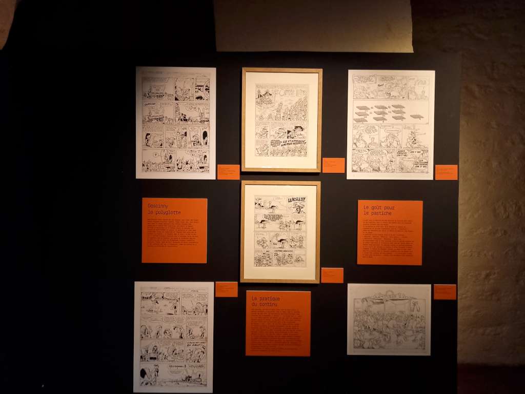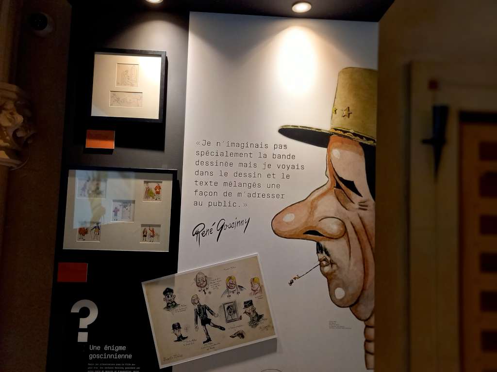 L’originalité de cette expo par rapport aux précédentes c’est d’être centrée sur sa manière d’écrire et son style littéraire. Ainsi un mur entier sera-t-il consacré aux phrases cultes, calembours et autres jeux de mots qui ont fait sa réputation. On y découvre la manière dont il a scénarisé littéralement ses œuvres et la recette du scénario « à la Goscinny. »