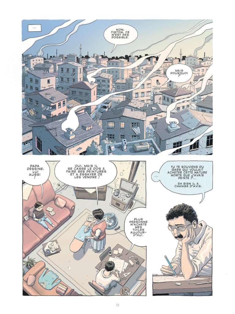 Mais surtout, ce qui rend le graphisme d’Ersin Karabut si vivant, c’est l’extrême expressivité de son trait et son aptitude à faire jaillir les émotions, à travers notamment ses personnages aux yeux un peu globuleux, le tout renforcé par la forme des cases et l’utilisation de couleur subjective.