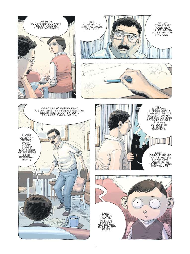 Les anecdotes ne sont jamais anodines mais a contrario révélatrices du climat, de la pression qui s’accentue. La tension est palpable tout au long de l’album. L’angoisse atteint son paroxysme lorsqu’il s’aperçoit que des islamistes l’attendent devant chez lui. Il ne saura jamais quelles en étaient les raisons.