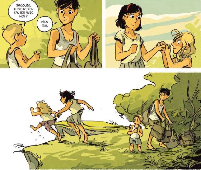 Ensuite comme l’indique les sous-titres des deux tomes, on observe un déplacement de l’intérêt du tome 1 au tome 2 : car dans « Les enfants de Surcouf » non seulement l’héroïne a vraiment de l’épaisseur mais également les enfants qui deviennent pratiquement le sujet du tome final alors qu’on aurait pu s’attendre à ce que seul l’enfant juif, l’enfant caché, soit développé. l. Ils sont tous bien individualisés et caractérisés et la direction d’acteurs de Carole Maurel est assez incroyable dans la justesse des mimiques et des émotions ; leurs visages sont très expressifs et le jeu de regards superbement rendu.