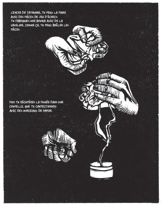 Il a été arrêté et condamné pour le meurtre d’une femme retraitée lors du braquage de son domicile. Lui défend son innocence. Moi, ça n’a jamais été mon sujet. C’est à dire qu’en m’engageant dans ce programme de correspondance, j’étais prête à correspondre aussi bien avec quelqu’un de coupable qu’avec quelqu’un qui n’assumait pas ses crimes. Donc cette correspondance, puis les projets de récit et de bande desinée qui ont suivi ne sont pas le sujet d’une contre-enquête, ne se penchent pas sur la question de la culpabilité.«