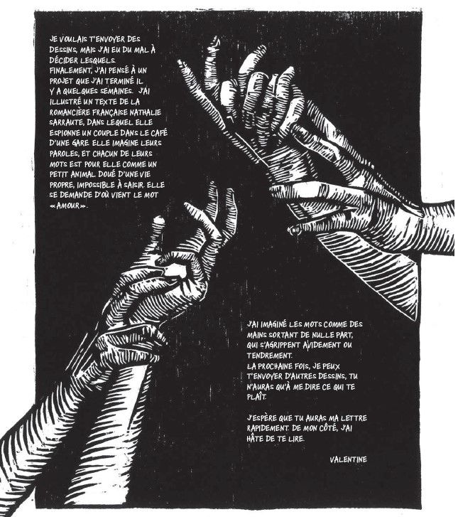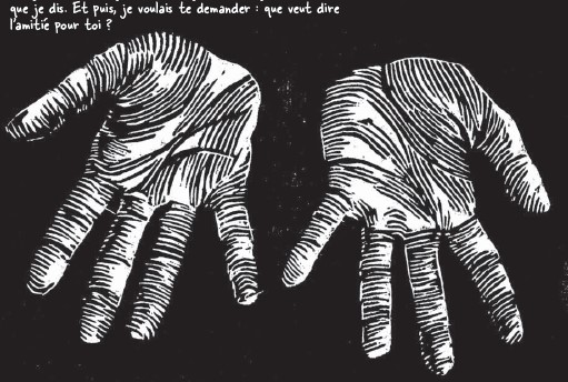Mais Perpendiculaire au soleil, c’est aussi une très belle histoire d’amitié entre deux êtres jeunes qui se sont trouvé des points communs : leur amour des mots, du dessin, de la musique. Lui est enfermé, elle, est libre. Dans une de ses premières lettres, il disait vouloir voir le monde par ses yeux. A la fin de l’album il déclarera « tu m’as fait faire partie du monde ».