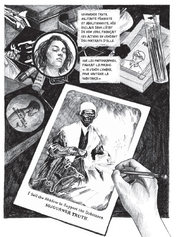 Le commentaire de l’autrice sur une planche faisant implicitement référence à l’esclavage.