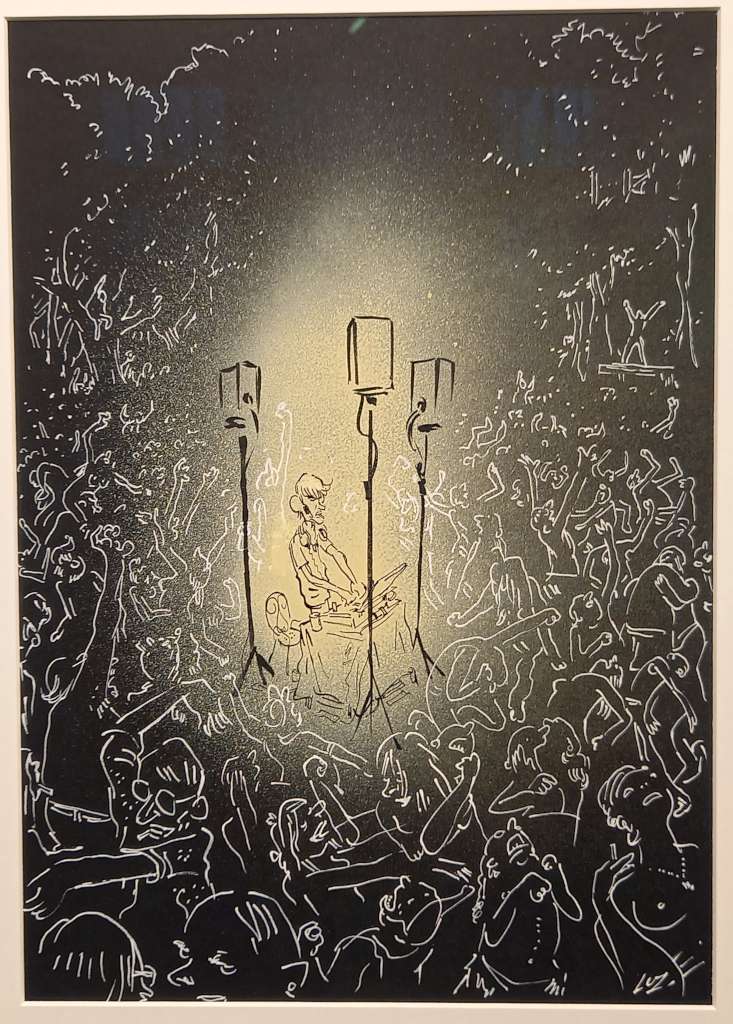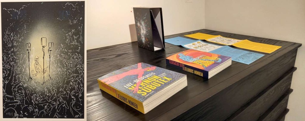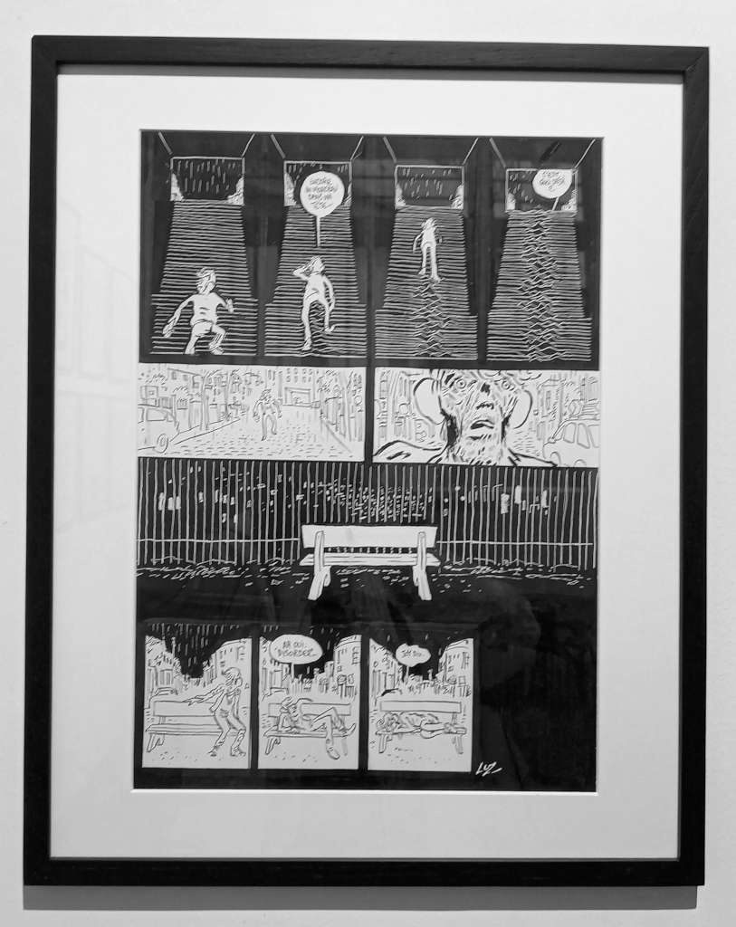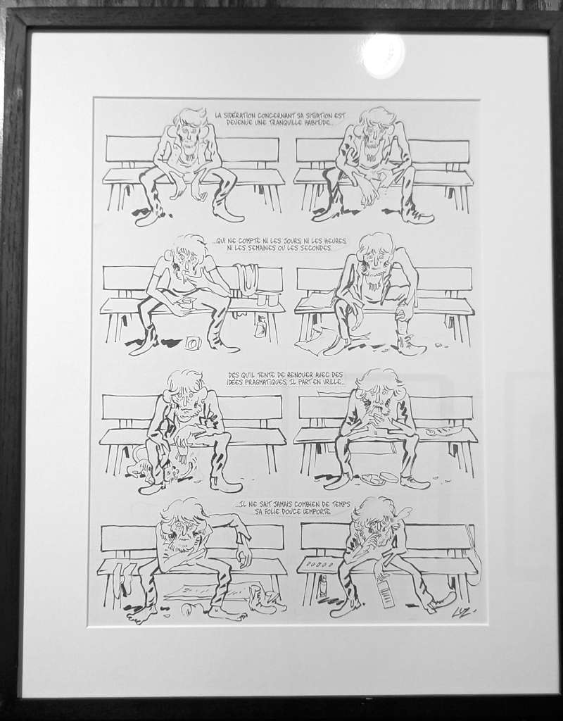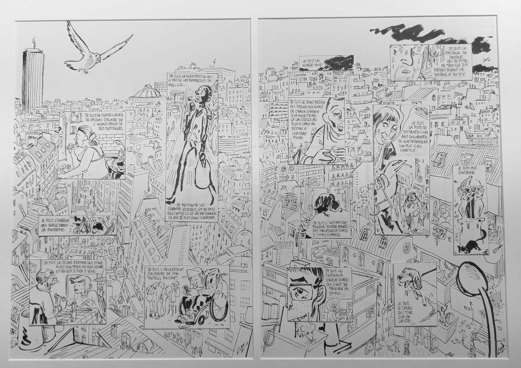 Bienvenue dans l’univers de Vernon Subutex, ancien disquaire devenu SDF né de l’imagination de Virginie Despentes. Avec l’inventivité qu’on lui connaît, Luz s’est emparé de la célèbre trilogie romanesque pour en faire une époustouflante adaptation graphique en deux volumes parus chez Albin Michel. Le deuxième volet de ce diptyque de 668 pages, fruit d’une collaboration étroite entre l’autrice et le dessinateur, vient de paraître en septembre. A cette occasion, la galerie Huberty & Breyne expose des planches originales réalisées à l’encre de Chine et acrylique des deux albums ainsi que quelques dessins inédits.