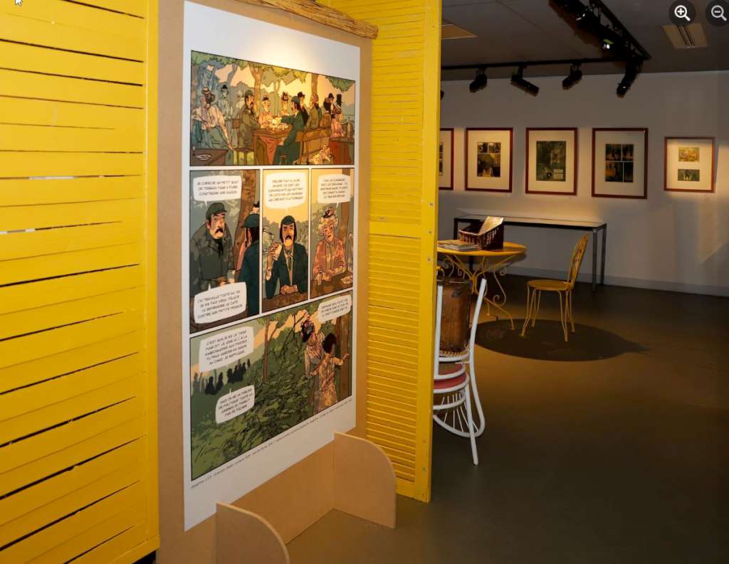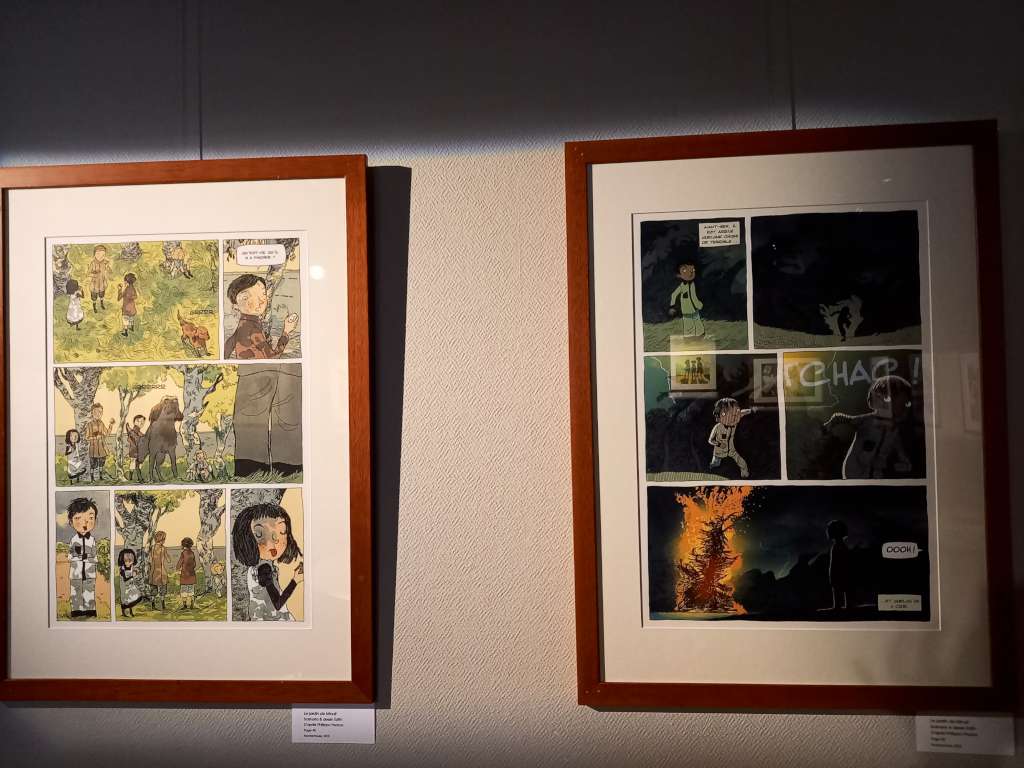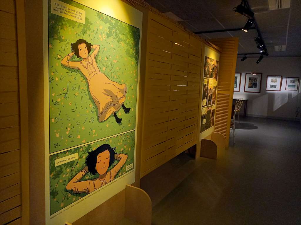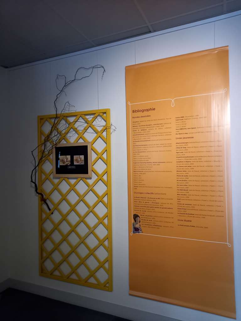 Donc c’est fort logiquement qu’une grande expo lui est consacrée à la maison de la BD que vous pourrez continuer d’admirer jusqu’au mois de mars. Et cette expo s’intitule …. « La maison jaune » en souvenir de ce premier tome qui lui a porté chance et parce qu’accueillante et chaleureuse, elle égaie le festival comme l’affiche du même ton qu’Edith a dessiné pour Bd BOUM 39.