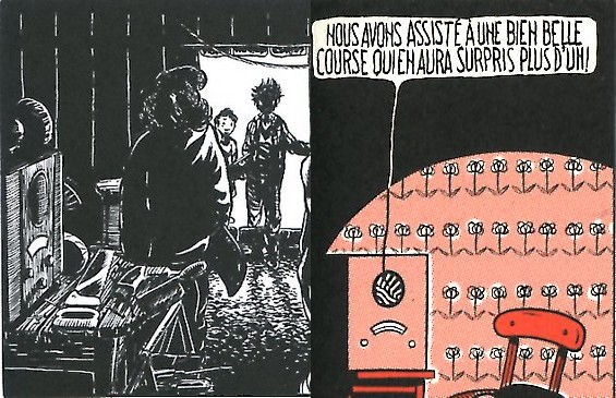 La musique de l’adolescence, les couleurs de l’adolescence. Et pourtant le roman graphique est totalement en noir et blanc, pas même une nuance de gris. Colorado train, c’est une claque au niveau du propos, mais c’est aussi une claque au niveau du graphisme. Le dessinateur a délaissé la bichromie ou trichromie de ses précédents albums, et a opté pour un puissant noir et blanc texturé qui nous happe dès les premières planches. Le noir envahit les pages lors des nombreuses scènes nocturnes avec une utilisation magistrale de la lumière alors qu’on va se noyer dans le blanc lors de l’épisode se déroulant dans la neige.