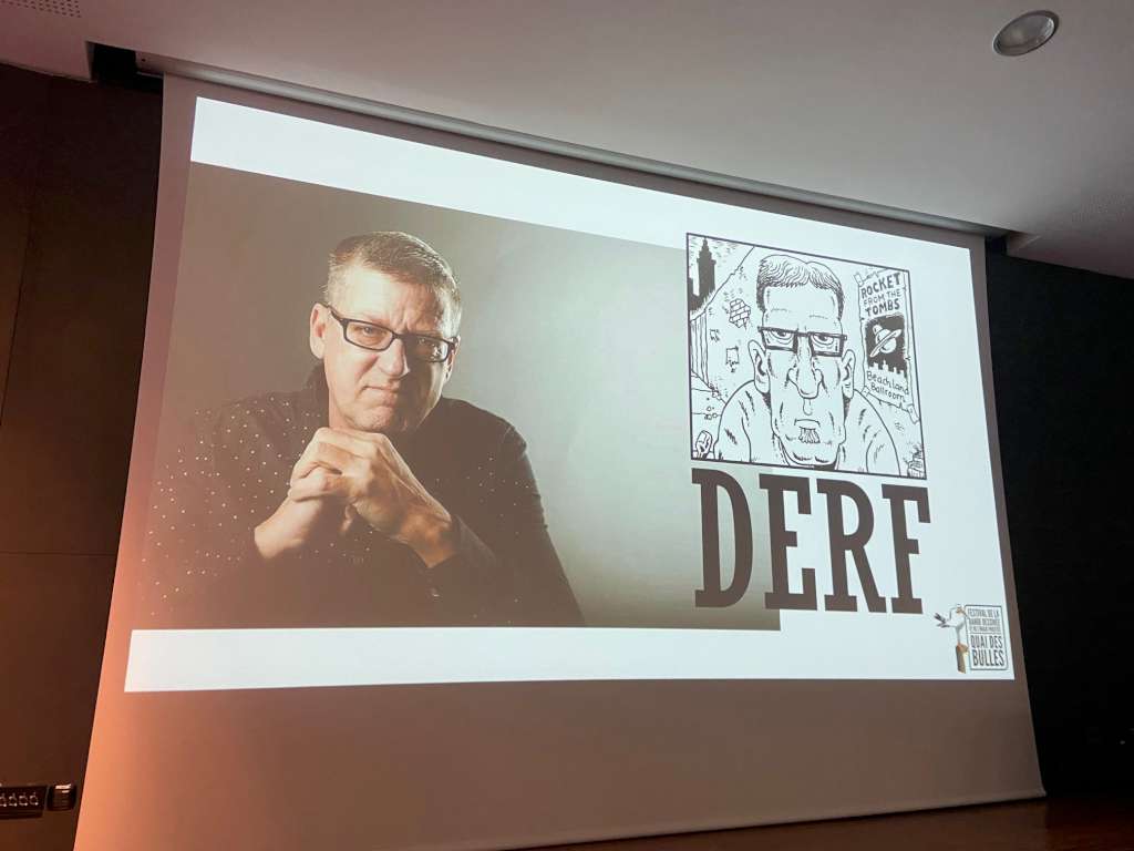 Les festivaliers ont pu suivre un parcours chronologique à travers ses 5 albums publiés aux Éditions Çà et là de Trues stories et Punk, Rock & Mobil homes à Kent State, quatre morts dans l’Ohio en passant par Mon ami Dahmer et Trashed.