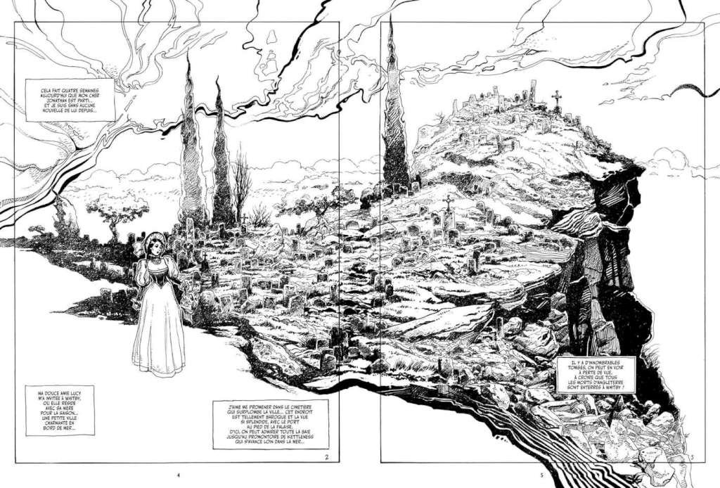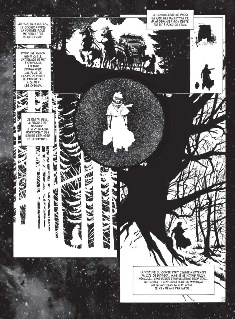 Pour les fêtes de fin d’année ressort trois ans plus tard une édition définitive à la couverture en noir, blanc et rouge sang augmentée de croquis et de l’adaptation d’une nouvelle de Bram Stoker : « L’invité de Dracula » publiée à titre posthume par la femme de l’auteur et qui aurait dû constituer le premier chapitre du roman avant que son auteur n’y renonce. Elle se décline comme la première en deux versions : la version classique et la version luxe. Cette dernière reprend le format des planches originales sur papier mat et non plus glacé comme en 2019 et rend grâce à l’encrage habité de Bess. Une œuvre somptueuse à avoir absolument dans sa bédéthèque. Une belle idée de cadeau à offrir aux amateurs de bd et de littérature!