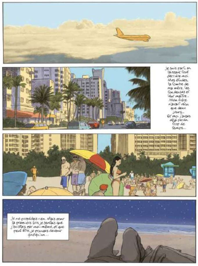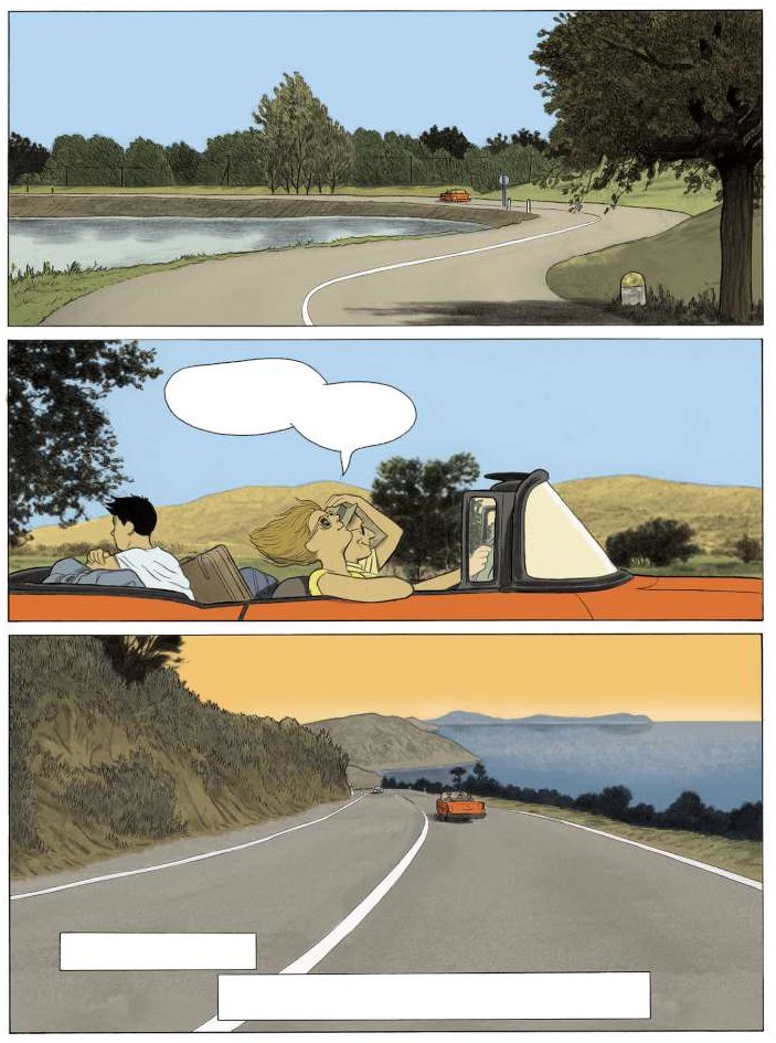 Bien sûr ce regard enchanté va subir l’épreuve du réel (et quelle épreuve) et l’album se mue en un roman d’apprentissage quand Paul sort, malgré lui, de la douceur douillette de l’enfance dont il gardera longtemps la nostalgie en perpétuel exilé. Ce Peter pan qui refuse de grandir va alors beaucoup bouger transformant l’histoire intimiste en une sorte de road bd échevelée. Et le lecteur va être lui aussi dépaysé.