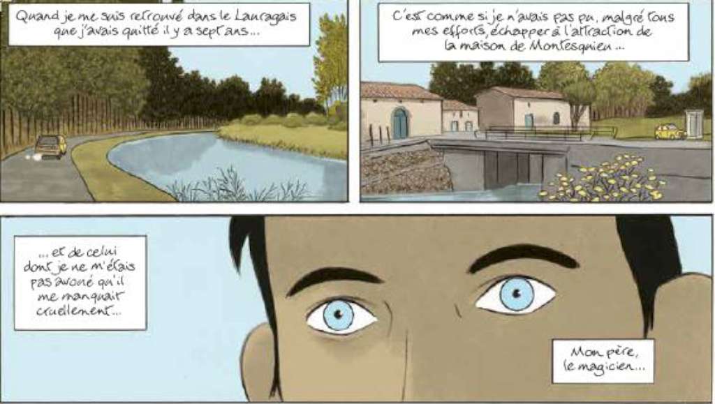 Mais ici le dessinateur est au stylo, pas aux pinceaux et pour ce bédéaste une « bonne adaptation ne doit pas être fidèle au livre mais au cœur du livre ». Il transforme donc la structure du roman en commençant par un prologue surprenant pour le lecteur d’emblée bousculé comme le héros ; il donne ensuite davantage de place dans son synopsis au personnage de Raoul. Haut en couleur, c’est un père désinvolte qui a l’air de se moquer de tout et aime faire les 400 coups avec son ami Jean mais l’on comprendra, grâce à un détail du roman qui est mis en relief dans l’adaptation, qu’il avait surtout peur pour son fils.