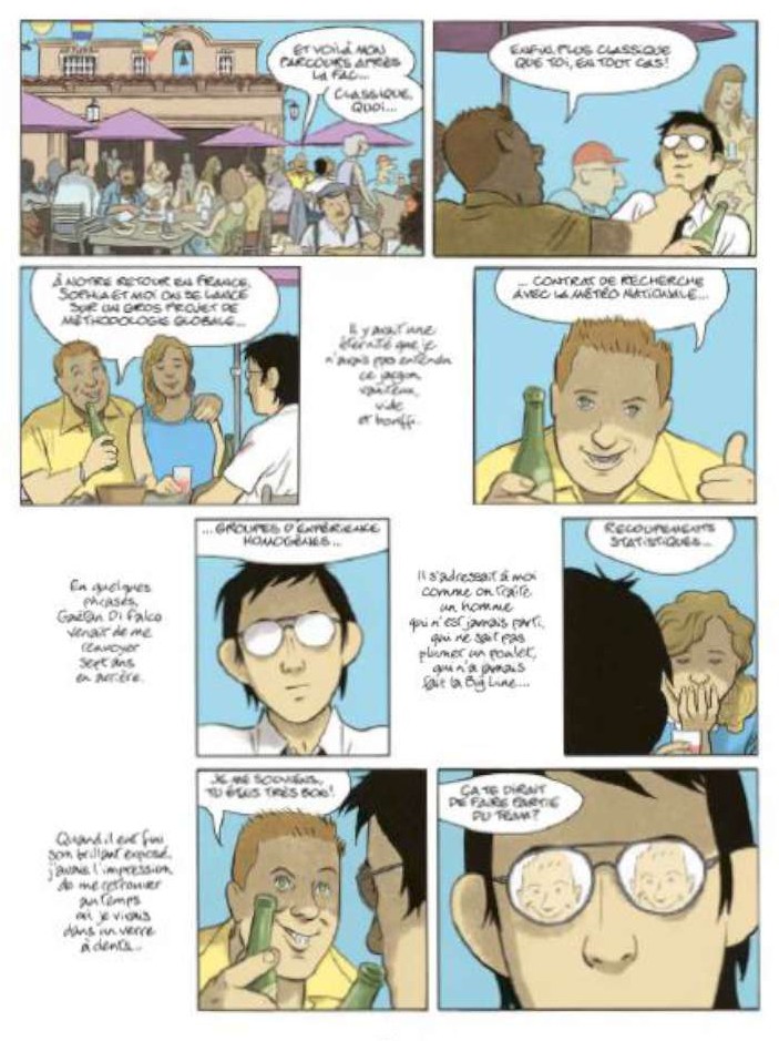 Alors bien sûr, on arguera du fait qu’on retrouve chez les deux auteurs un ton légèrement acerbe, désenchanté, plein de dérision qui permet un propos distancié comme dans les albums de « Jean-Claude Tergal » ou « Raymond Calbuth » On peut par exemple reprendre la description impitoyable et réjouissante que fait Dubois du camarade de faculté retrouvé par hasard par Paul au Mexique :