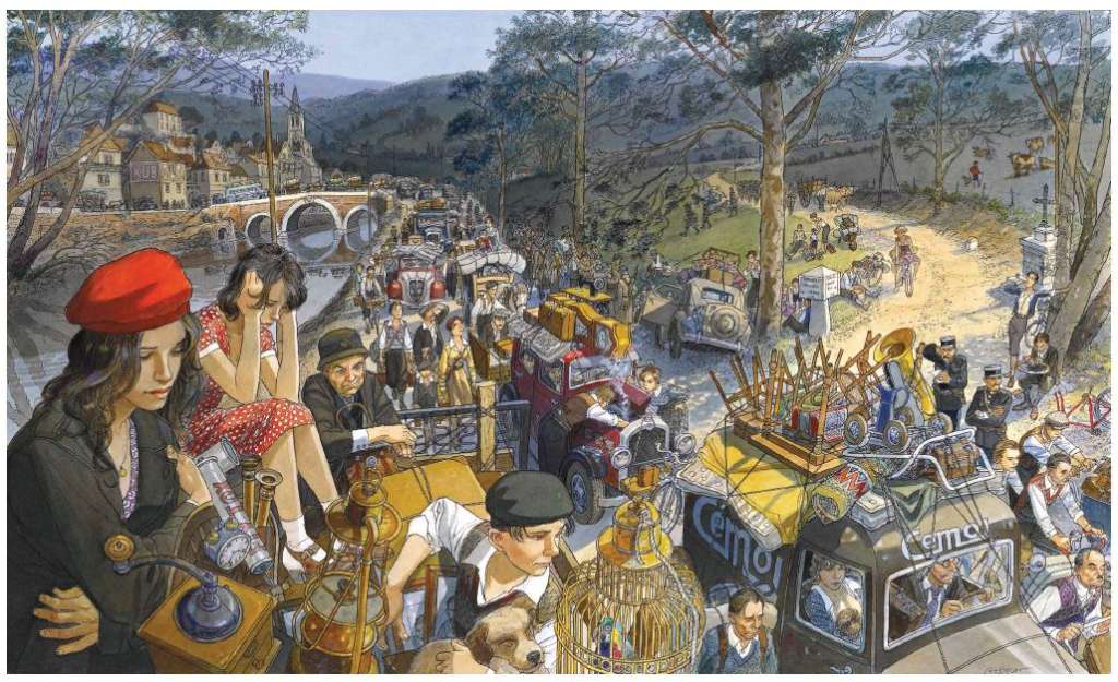 Ce dernier tome ou « épisode » comme vous dites est paradoxalement assez joyeux alors qu’il se déroule en pleine débâcle, exode et calamiteuse opération « Dynamo » ; vous en avez fini avec le « pessimisme sifflotant » qui était le vôtre ?