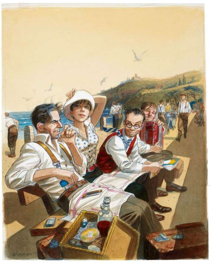 Je les qualifierais d’illustrateurs du positif quoi : qui créent des images, qui donnent envie aux gens de cheminer avec les personnages y compris dans des circonstances un peu dramatiques. Un jour, un collectionneur m’avait dit en voyant un très grand dessin que j’avais réalisé sur la Débâcle pour une exposition chez Maghen « c’est malheureux on a envie d’y être » je vois ce qu’il veut dire parce que je m’attache à ça mais je m’attache à ça pour me faire plaisir à moi-même en premier ! J’ai besoin de dessiner des choses positives, des cases dans lesquelles on aime à se blottir, dont le dessin nous ramène à l’essentiel de la vie. Mon penchant graphique pour le dessin douillet constitue mon ADN de dessinateur !