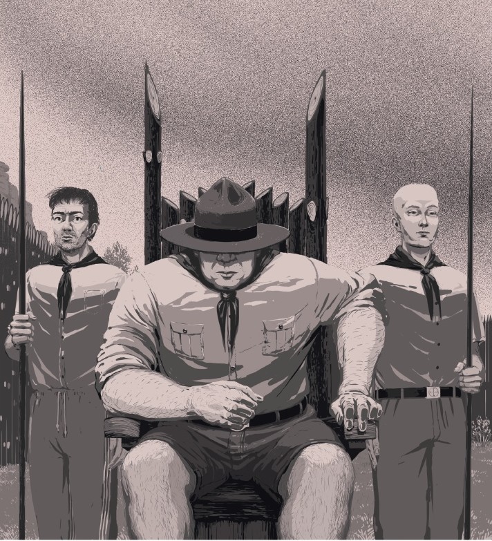 Le passage concernant le camp de scouts est réalisé dans des tons sépia avec une formidable mise en scène et où les cadrages, plongées et contre-plongées rappellent l’esthétisme nazi d’une Léni Riefensthal ou encore évoquent le colonel Kurtz d’Apocalypse Now.