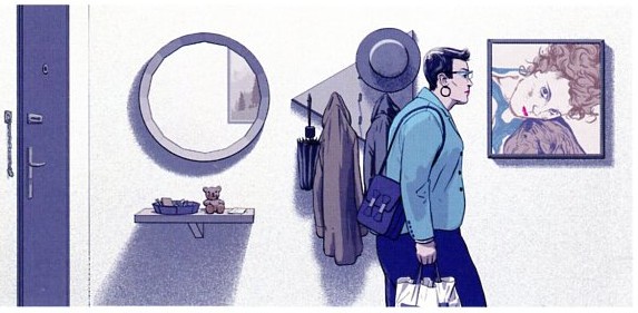 Dès la première de couverture, on est sous tension : un gaufrier de 18 images dans une bichromie très froide de bleu/vert reproduisant des bribes de l’histoire qui, rassemblées, font apparaitre le visage d’Anna-Barbora en gros plan. Inquiétant … Quant à la quatrième de couverture, représentant Anna pianotant de nuit sur son portable, elle est proprement angoissante.