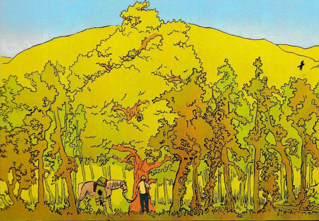 Dans de superbes pleines pages, Foletti rend lui aussi hommage à cette beauté des paysages. Il sait évoquer les saisons avec des palettes différentes et dépeint magnifiquement la forêt, inspiré par sa région natale du Tessin. Malgré les conditions climatiques assez extrêmes qui règnent dans le comté d’Oconee, il arrive à créer un sentiment nostalgique pour le lecteur devant un monde superbe qui ne sera bientôt plus. D’ailleurs on remarquera que les couleurs tranchées et éclatantes des quatre premiers chapitres se mélangent dans le cinquième en une dominante de marron et de gris : la Carolina Oil a étendu son emprise de boue et noie le paysage dans une atmosphère de fin du monde.