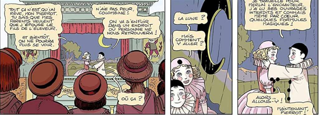 Hervé Richez décrète en effet, que cet album fait partie d’une nouvelle ligne éditoriale de Grand Angle qui prône « un merveilleux grand public » et sera formée de récits positifs et de contes qui font oublier la difficulté des temps actuels. La structure même de l’album découpé en trois actes rappelle le déroulement du spectacle de marionnettes donné aux enfants au pied de la tour Eiffel qui se déroule en parallèle. Comme Gédéon le vieux marionnettiste modifie l’histoire de Pierrot et Colombine (ils auraient dû mourir sur la Lune par manque d’oxygène) pour faire rêver les enfants, Richez et Manini changent la destinée des amoureux.