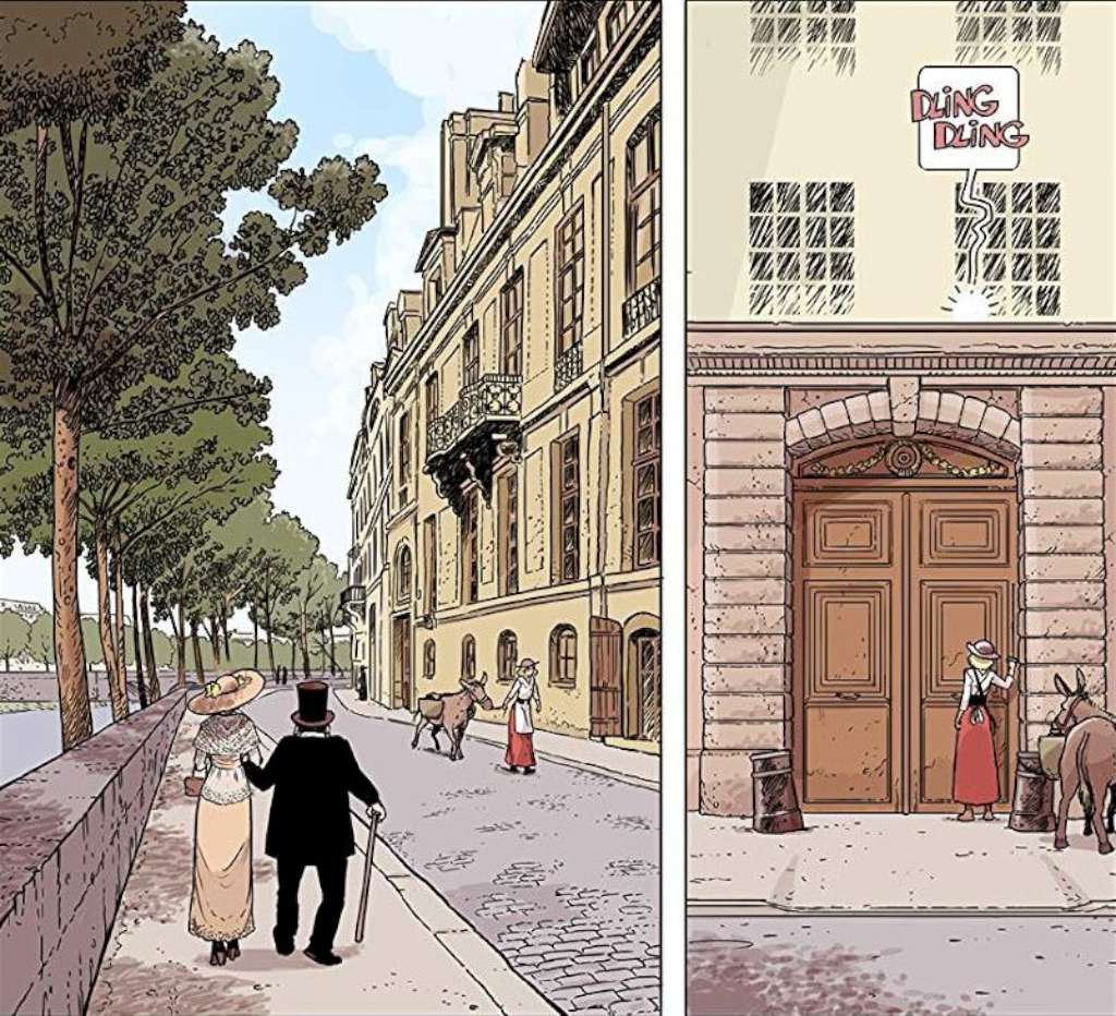 Le sentiment de « déréalité » qu’on éprouve en voyant le film, se retrouve à la lecture de l’album : le Paris de David Ratte est bien propret et les métiers des gens de rien présentés de façon pittoresque ; la ligne claire adoptée et les couleurs pastel lumineuses de Mateo Ratte accentuent cette impression, mais c’est voulu.