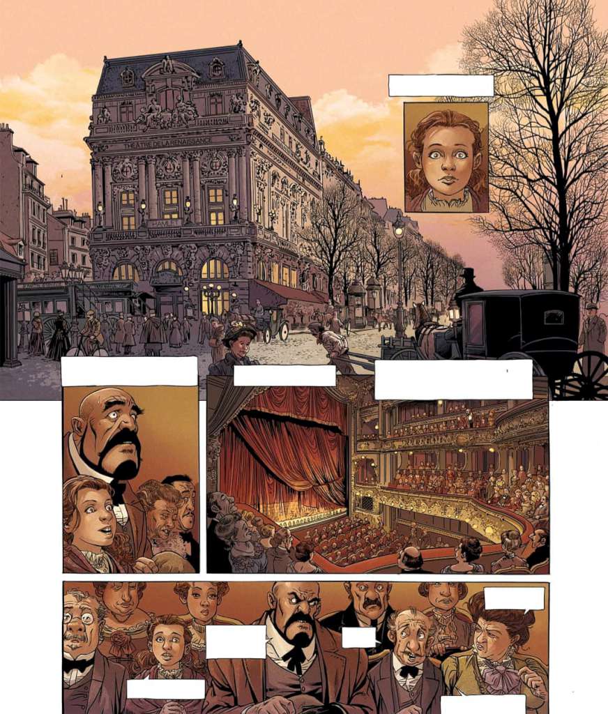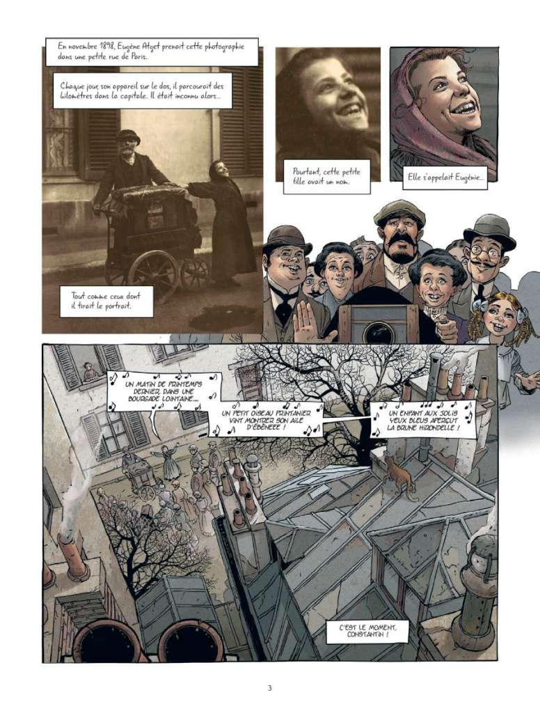 A noter que les éditions Bamboo fournissent un précieux dossier historique en fin d’album qui présente la zone avec des reproductions des clichés d’Atget et les biographies du photographe et de Sarah Bernhardt ce qui permet au lecteur d’effectuer plus facilement la mise en contexte historique.