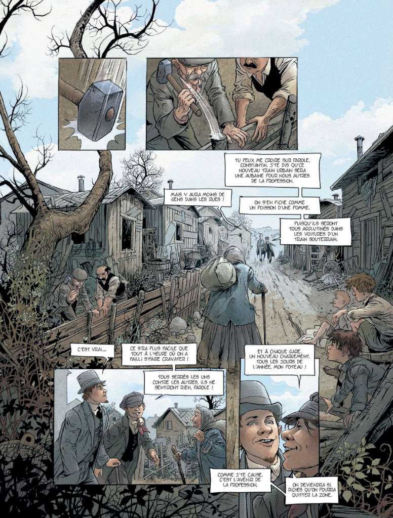 Le duo familial, « Stalner père et fils », se reforme encore une fois dans L’Oiseau rare paru aux éditions Bamboo pour traiter d’une conséquence plus méconnue de la réforme d’Haussmann : la création de la « zone » au-delà des fortifs qui regroupait tous les laissés pour compte du capitalisme. Cet album, premier tome d’un diptyque est passionnant et cinématographique. Il a toute sa place dans la bien nommée collection « Grand Angle ».