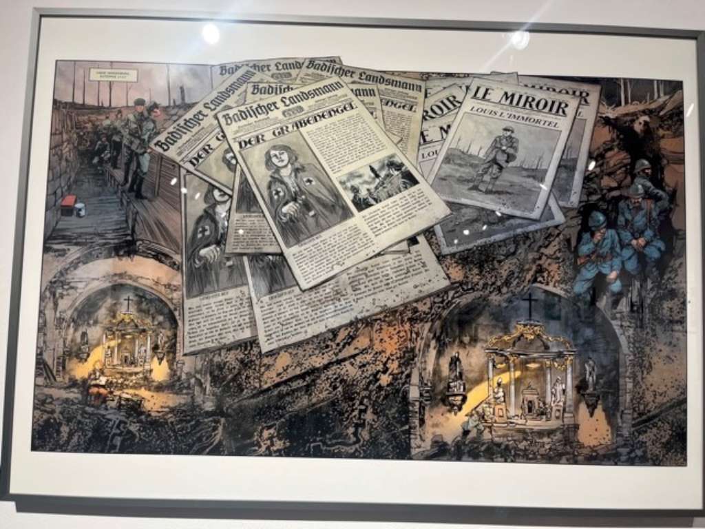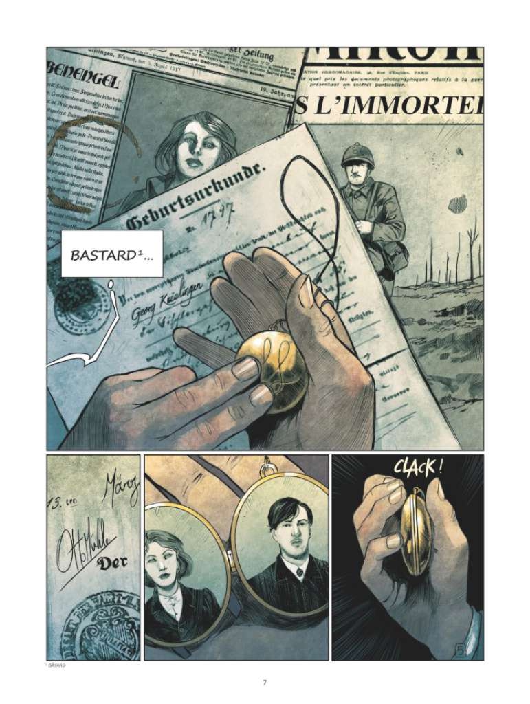 Nathalie Ponsard-Gutknecht et Miceal Beausang-O’Griafa se sont livrés à un minutieux travail de documentation pendant les huit années qu’ils ont porté ce projet et nous en donnent un aperçu dans le fort bienvenu cahier historique qui clôt l’ouvrage. Ils nous proposent en effet en annexe des articles qui permettent de replacer leurs histoires dans l’Histoire et leur donnent toutes leurs dimensions. On en apprend ainsi davantage par exemple sur la bataille du Hartmannswillerkopf, sur le droit de vote des femmes et la révolution de 18 en Allemagne ou encore sur l’artisanat des tranchées qui revêt un rôle capital dans cet album et dont on entend généralement peu parler.