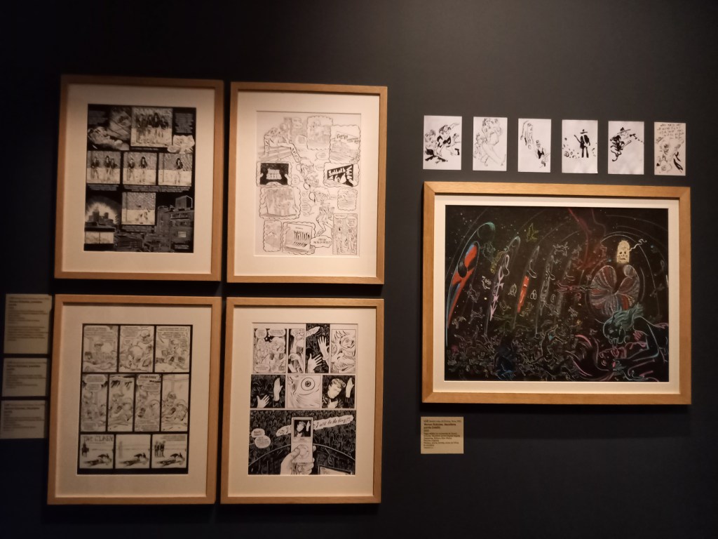Au fil rouge peu ou prou chronologique qui va du comics au manga, vont se tisser d’autres fils avec des thématiques diverses à travers les différents espaces tel ceux dévolus à la représentation des icônes, aux autofictions, aux créations de rockers fictifs tels Lucien de Margerin, aux captations de concerts sur le motif avec Luz, aux biopics (très tendance aujourd’hui) …