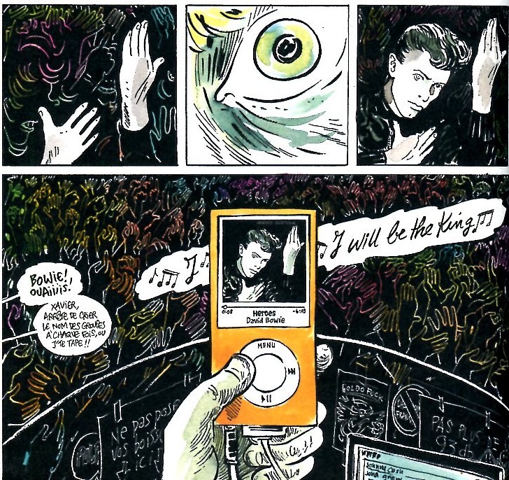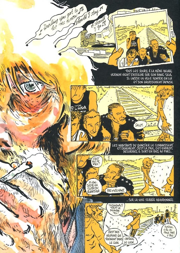 Alors bien sûr dans la bd comme dans les romans, la musique est omniprésente sous toutes ses facettes : la bande-son qui rythme le récit et entre en résonance avec les évènements, les pochettes de disques (détournées ou pas), le mythe de de la rock star à travers Alex Bleach, la dématérialisation de la musique entraînant la dématérialisation sociale du disquaire cet élément phare pour les fans de rock dans les années 80-90 et évidemment les Convergences…