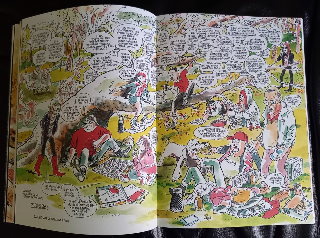Le deuxième volet commence très fort avec en prologue cette anaphore qui clôt le premier roman universalisant le propos, ne se contentant pas de peindre le tableau d’une époque mais brossant surtout le portrait de toute une génération broyée, anaphore d’autant plus émouvante qu’on ne peut s’empêcher de penser à un autre Je suis … né précisément le 7 janvier 2015. La bande, quant à elle, va se fédérer autour de Vernon lors de retrouvailles quotidiennes en fin d’après-midi aux Buttes-Chaumont goûtant au plaisir d’être ensemble.