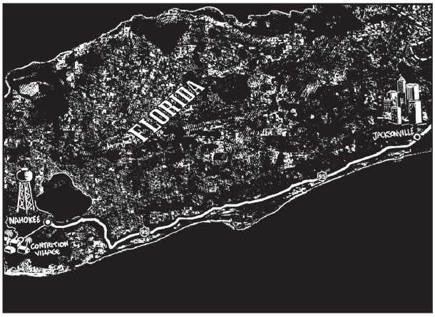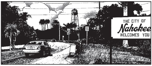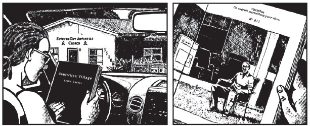 Si Contrition Village est une agglomération fictive, elle n’en est pas moins directement inspirée de Miracle Village dans le comté de Palm Beach également, une communauté fondée à la fin des années 2000 par le pasteur Dick Witherowen qui en a fait un refuge pour les délinquants sexuels non-violents ayant purgé leur peine. Le lotissement cerné d’anciens champs de canne à sucre avait été construit à l’origine pour y loger les saisonniers. Dans le roman, il s’agira de champs de coton, le pasteur Witherowen donnera naissance au révérend Shaw et la ville de Pahokee dont dépend Miracle Village à Nahokee. Pour terminer, signalons que Carlos Portela a eu l’idée de ce scénario après avoir découvert le reportage bien réel réalisé à Miracle Village en 2013 par la photographe Sofia Valiente qui inspirera le personnage d’Erika Carter dans la bd …