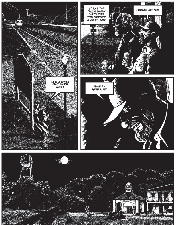 Contrition est un récit noir qui ne se ne se contente pas d’être captivant mais, bien que ne tombant jamais dans le sensationnalisme ou le voyeurisme malsain et laissant la violence hors champ est également particulièrement dérangeant en raison des nombreuses questions qu’il soulève, le thème central n’étant autre que la nature humaine et plus précisément le mal qui est en nous. Antonio Altarriba, en fait une très belle analyse dans sa préface intitulée Le diable au corps. Il y est question de doute, de repentir, d’amendement, de pardon, de rédemption, de vengeance, de réinsertion et des réponses appropriées ou pas de notre société.