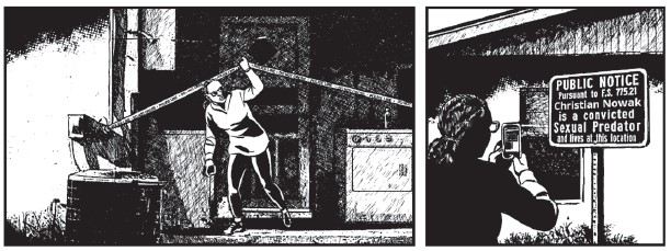 Zoom avant sur une maison en train de brûler. À l’intérieur, un homme assis. Une entrée en matière percutante pour un récit qui ne l’est pas moins. Cette maison, c’est celle de Christian Nowack, résident à Contrition Village, petite localité située dans le comté de Palm Beach qui accueille les délinquants sexuels ayant purgé leur peine venus s’y réfugier en raison du chapitre 775 section 210 des statuts de la Floride qui interdit à tout individu condamné pour délit sexuel de vivre à moins de 300 mètres d’un endroit fréquenté par des enfants : école, crèche, parc ou autre aire de jeux…
