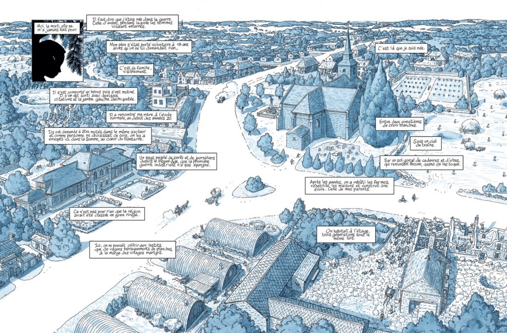 «C’est là que je suis née… Entre deux cimetières de croix blanches… Sous un ciel de traîne… Sur un sol gorgé de cadavres et d’obus qui remontent encore quand ça les toque.»