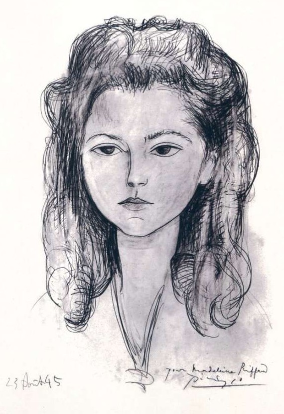 Si le magnifique portait ornant la couverture du premier cahier n’est pas bleue, c’est tout simplement parce qu’il n’est pas signé Dominique Bertail mais Picasso, excusez du peu. C’est le portrait que le peintre offrit à Madeleine pour ses 21 ans en 45. Il fut réalisé en novembre 44 pour servir de frontispice au recueil de poèmes de Madeleine «Le poing fermé» préfacé par Eluard.
