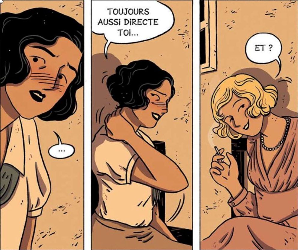Mais ce n’est pas seulement à un voyage dépaysant que nous convie l’autrice ; elle choisit également de nous ramener à l’époque des années 1930. Pourquoi cette date ? Parce qu’elle avait envie de « faire un album en costumes » mais également parce que les années 1930 sont une période charnière : à la fois le deuil de l’insouciance des années folles après la crise boursière mais aussi un moment où la menace des extrémismes pointe en Europe et où la condition de la femme est sur le point de changer. Après la guerre de 1914, les femmes qui avaient endossé les responsabilités masculines tandis que les hommes étaient au front ne veulent plus être cantonnées à leur rôle d’épouses et mères et le changement leur est alors permis.