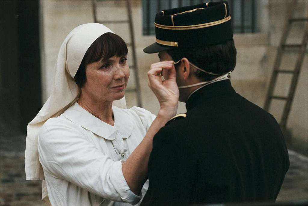 Le film lui est clairement pacifiste. La scène d’ouverture dispense d’emblée ce message dans une prolepse par rapport au roman qui se déroule lui dans l’ordre chronologique : celle d’une cérémonie militaire qui a lieu en 1918. Bien moins prestigieuse que celle du Traité de Versailles évoquée dans le livre, elle est présentée comme une remise de médailles figée, confite dans des rituels désuets, devenant même effrayante lorsqu’apparaît en gros plan le visage d’Adrien barré d’un bandeau laissant entrevoir sa bouche grimaçante. Toutes les scènes de liesse et de fête qui suivent sont comme contaminées par cette annonce qui fait office de cœur tragique.