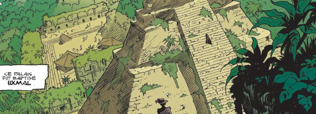 Cette dernière couverture efface l’héroïne éponyme (présente sur les deux tomes précédents) au profit de la culture autochtone. Cela montre d’emblée que l‘acculturation ne fonctionne pas : les colons qui voulaient s’approprier le patrimoine local pour mieux briller se retrouvent piégés. Une fois encore Nury et Bonhomme jouent sur les symboles : au carrosse du tome 2 qui marquait l‘incongruité et la vanité de l’Empire répond ici la maquette de la cité de Uxmal qui devait être le fleuron du pavillon mexicain à l’exposition universelle et qui finit pulvérisée dans une embuscade préfigurant la ruine du régime. L’impératrice ne pourra pas l’exhiber à Paris, accaparer l’histoire d’un pays et montrer la puissance de son Empire qui se meurt.