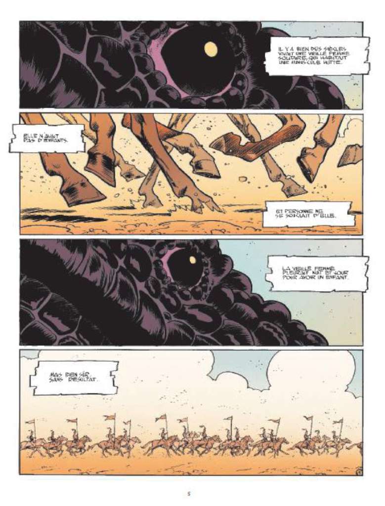 On notera d’ailleurs que le récit baigne dans une tonalité fantastique car l’ouvrage s’ouvre comme les deux premiers sur une case présentant un œil en gros plan. Mais contrairement aux volumes précédents, il ne s’agit pas de l’œil de l’héroïne mais de celui d’un reptile menaçant que l’on retrouve en clausule de l’album et qui en « incarnant » la légende semble matérialiser une menace non plus politique mais personnelle et annoncer une tragédie pour l’impératrice cette fois.