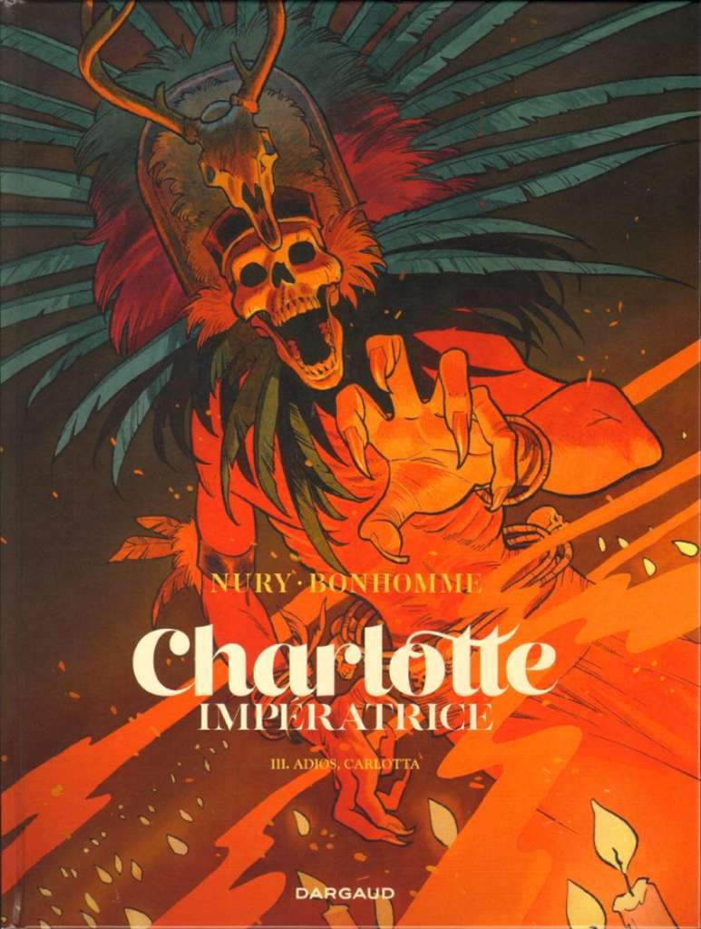 Voici donc venu le troisième opus de la tétralogie de Fabien Nury et Matthieu Bonhomme « Charlotte impératrice » : « Adios Carlotta » paru aux éditions Dargaud. Les deux auteurs nous livrent une grande fresque mais ne se laissent pas emprisonner par leur colossale documentation. Si le piège de la bande dessinée historique est de vouloir en faire un livre d’Histoire, les auteurs nous proposent ici une vision plus humaine, psychologique, politique -et même mythologique dans ce tome- de la destinée de leur héroïne. Il s’agissait au départ d’un projet en trois actes mais l’acte central était si copieux qu’il leur a fallu consacrer deux tomes à l’aventure mexicaine de Charlotte. A la fin du 2e tome, Charlotte qui avait profité de l’absence de son mari pour prendre les rênes de l’empire mexicain apprenait désespérée le retour ce de dernier. Dans cette suite de l’épisode mexicain, le frivole monarque fait rapidement l’unanimité contre lui : les révoltes menées par Benito Juarez soutenu par les États-Unis prennent de l’ampleur tandis que l’armée française d’occupation se prépare à quitter le Mexique….