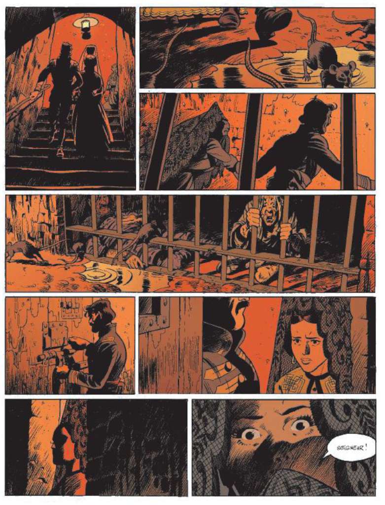 Prêtant particulièrement attention au tempo de leur narration, ils choisissent en effet d’étirer une deuxième scène après celle des ruines dans ce tome : celle de la visite au confesseur de Charlotte dans sa prison. Partisan de Juarez, il est inspiré des théologiens de libération d’Amérique latine mais aussi du prêtre de « Rome ville ouverte » de Rossellini et incarne la résistance sous l’occupation… quelle qu’elle soit et ses propos — parfois textuellement repris du film italien – donnent toute la portée politique de l’œuvre.