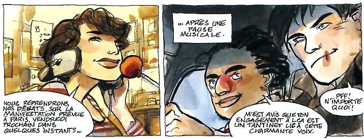 Et c’est à travers le prisme de Camille et des membres de cette famille que nos bédéistes vont montrer à quel point cette expérience de radio a, en libérant la parole, fait évoluer les mentalités et changer les protagonistes : émancipation pour la mère, ouverture d’esprit et tolérance pour le père, projets d’avenir pour le fils. Pour bien comprendre les choses, comme Camille nous invite à le faire dans la séquence introductive de l’album, revenons en arrière.