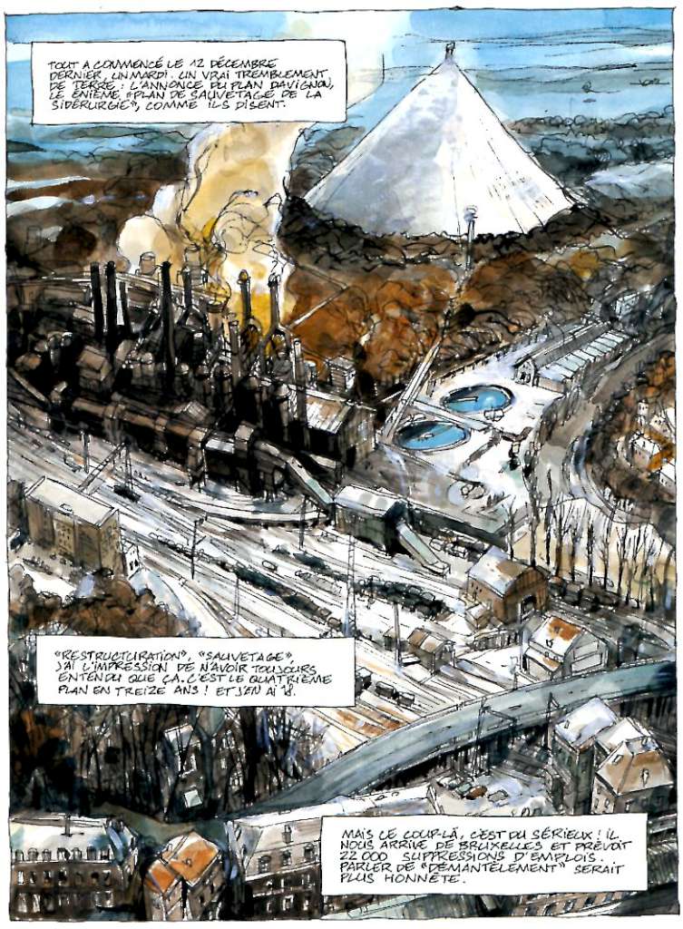 A la fin de l’album, avant qu’une chronologie ne retrace conjointement la lutte des sidérurgistes et l’histoire de LCA. un troisième Lorrain est venu apporter sa modeste contribution dans une postface de 3 pages. Il s’agit de celui « qui dessine si bien les hauts fourneaux », autrement dit Baru.