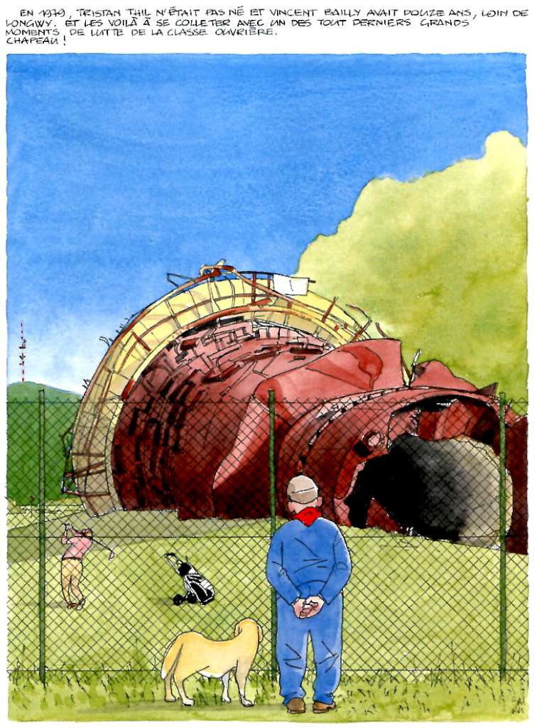 Tristan Thil, le scénariste, réalisateur de plusieurs documentaires notamment sur la fin de la sidérurgie en Lorraine dont « Florange dernier carré » en 2012 a également signé le scénario de l’album « Florange, une lutte d’aujourd’hui » paru en 2014 chez Dargaud, la réalisation graphique ayant été confiée à Zoé Thouron. Autant dire que l’histoire de la sidérurgie lorraine, il la connaît bien.
