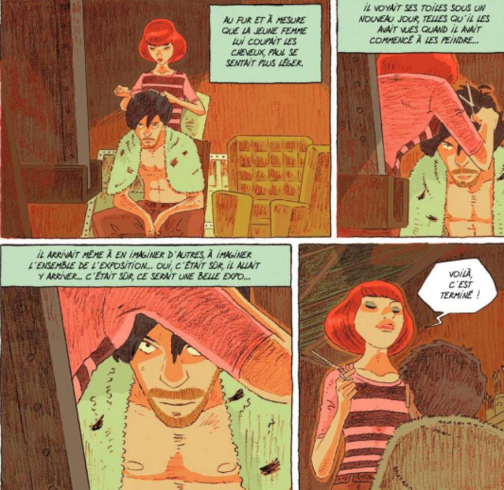 En effet, les plus belles définitions données de l’art dans l’album ne le sont pas par les peintres lors de leurs conciliabules interminables et réducteurs mais par Mathilde la jeune coiffeuse.