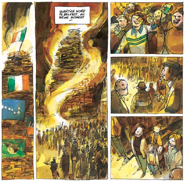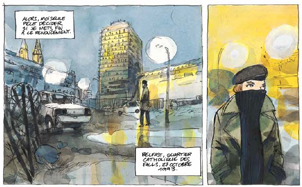 Cette phrase qui s’inscrit en sous-titre des deux tomes déjà parus annonce d’emblée la couleur. Partitions irlandaises, c’est du Shakespeare à la sauce Kris/DeBailly. Roméo et Juliette à Belfast. Éros et Thanatos. Roméo, c’est Tim, fils de paramilitaire protestant assassiné sous ses yeux vingt ans auparavant. Juliette, c’est Mary « Peace girl », née le jour des accords de paix au sein d’une famille catholique dont les parents militaient au sein du Sinn Féin voire de l’IRA. On comprend vite que la fiction est un prétexte pour revisiter l’histoire de l’Irlande du Nord et qu’histoire familiale et histoire nationale vont avoir des répercussions sur le présent et l’avenir de nos Roméo et Juliette irlandais.