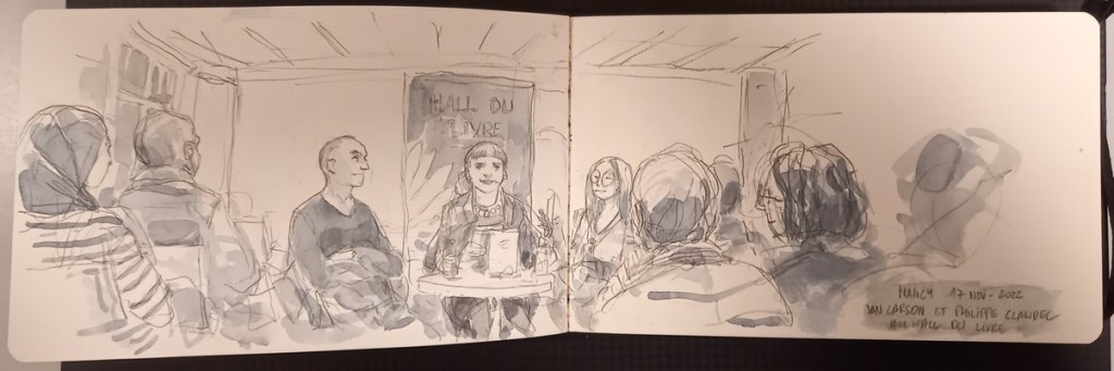 La rencontre entre la romancière nord-irlandaise Jan Carson, Vincent Bailly et Kris en janvier dernier à La Parenthèse à Nancy.