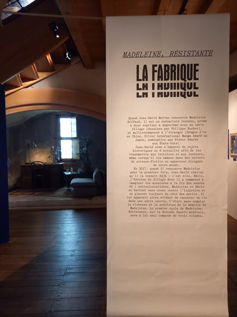 Une pièce entière est dédiée au processus de création de la bd et relate les liens profonds qui unissent les deux bédéistes et Madeleine Riffaud que JD Morvan avait rencontrée pour la première fois en 2017 pour lui faire part du projet.