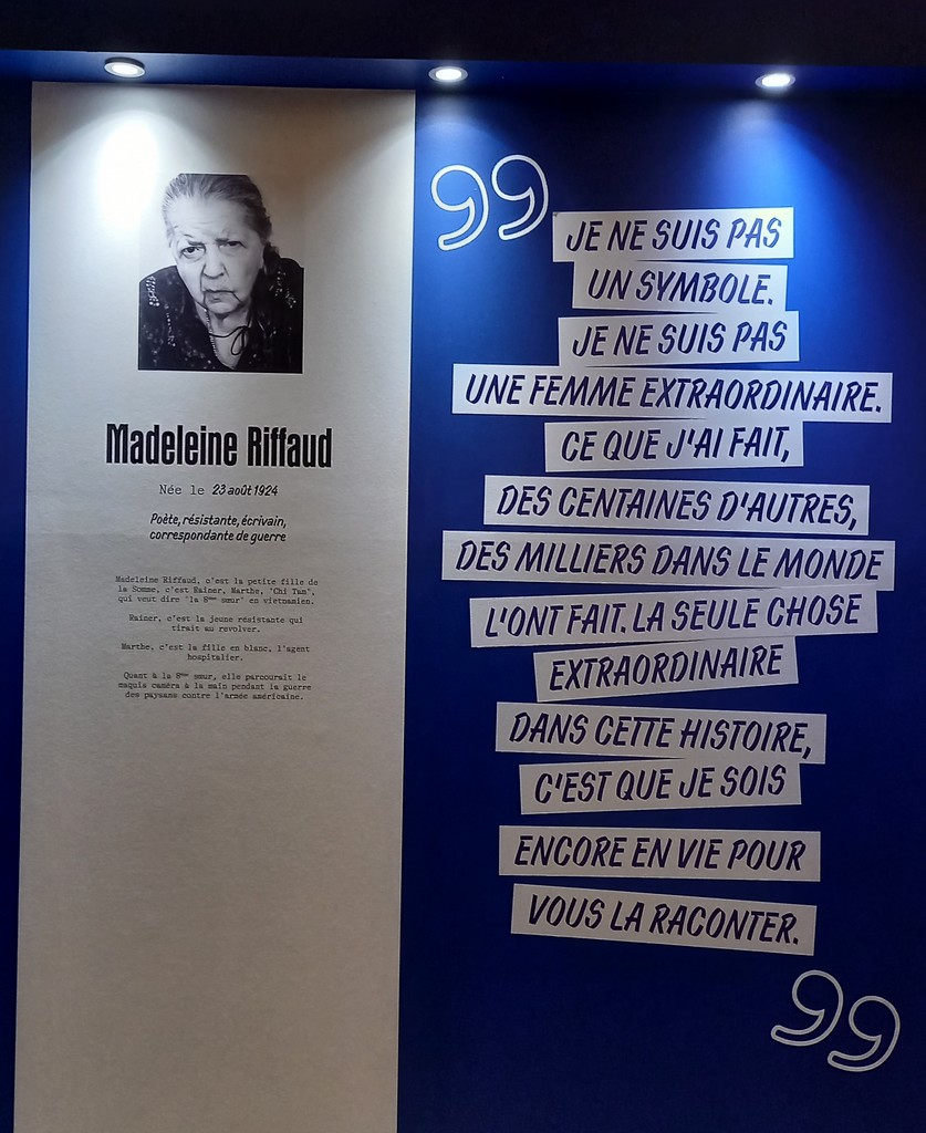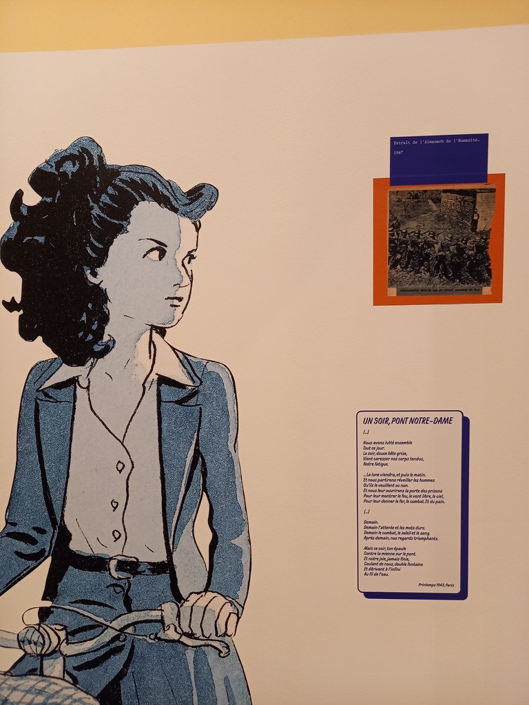 Héroïne de la Résistance, poétesse, journaliste, correspondante de guerre, passeuse de mémoire, scénariste de bd, les différentes facettes de celle qui va souffler ses 100 bougies le 23 août, 80 ans après la libération de Paris à laquelle elle a participé sont évoquées à travers des objets et documents tirés de ses archives personnelles, de nombreuses planches ou illustrations originales et reproductions de bande dessinée sans oublier les vidéos et les poèmes qui parsèment le parcours ainsi quelques propositions interactives.